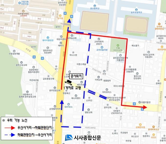¿À´Â 16ÀϱîÁö ÁøÇàµÇ´Â ¿ì»ê±³Â÷·Î °ø»ç±¸°£Àº ÇöÀå ¿©°Ç»ó ±¼Âø¹üÀ§°¡ ³Ð¾î ¿Õº¹ 3°³ Â÷·Î Áß 1°³ Â÷·Î¸¸ ÀÌ¿ëÇØ¾ß ÇÑ´Ù. ±¤ÁÖ»ó¼öµµ»ç¾÷º»ºÎ´Â °ø»ç Á¾·á ¶§±îÁö Â÷·®½ÅÈ£¼ö¿Í ¾È³»°£ÆÇ µîÀ» ÁÖ¡¤¾ß°£ Áö¼Ó ¹èÄ¡ÇØ °ø»ç·Î ÀÎÇÑ ±³Åë ºÒÆí ¹× »ç°í¸¦ ÃÖ¼ÒÈÇÒ °èȹÀÌ´Ù.