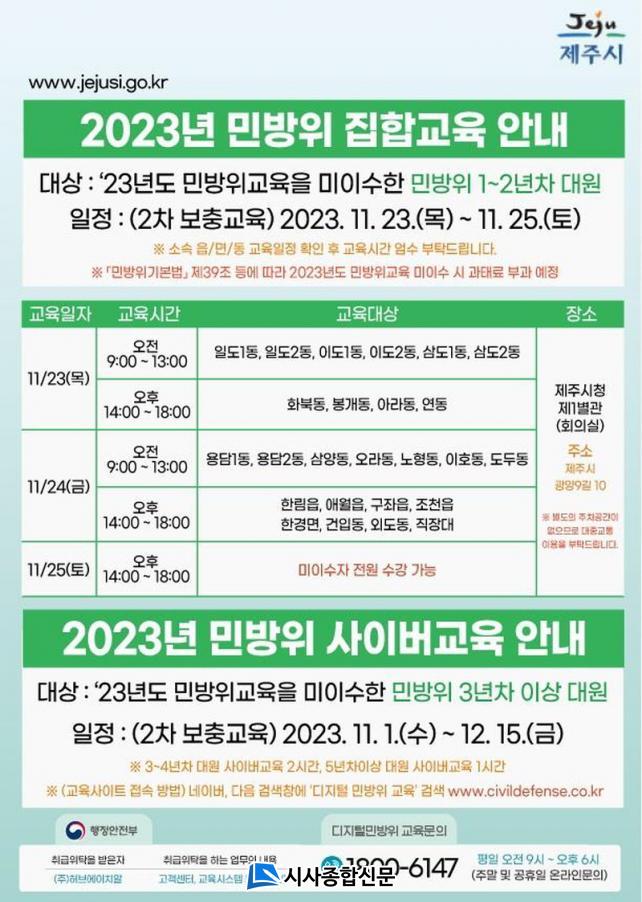 À̹ø ÁýÇÕ±³À°Àº º»±³À° ¹× 1Â÷ º¸Ãæ±³À° µî 2023³âµµ ¹Î¹æÀ§±³À°À» ¹ÌÀ̼öÇÑ 1~2³âÂ÷ ´ë¿ø 1,109¸íÀ» ´ë»óÀ¸·Î ÁøÇàµÈ´Ù. 11¿ù 23Àϰú 24ÀÏ¿¡´Â ¿ÀÀü(9~13½Ã)․¿ÀÈÄ(14~18½Ã) ±³À°À» ½Ç½ÃÇϰí, ÆòÀÏ¿¡ ±³À° Âü¼®ÀÌ ¾î·Á¿î ´ë¿øµéÀ» À§ÇØ 25ÀÏ Åä¿äÀÏ¿¡´Â ¿ÀÈÄ(14~18½Ã) ±³À°À» ÁøÇàÇÒ ¿¹Á¤ÀÌ´Ù.