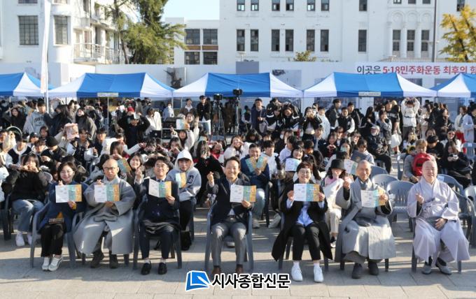 [½Ã»çÁ¾ÇսŹ® = ¿À½ÂÅà ±âÀÚ] ±¤ÁÖ µ¿±¸(ûÀå ÀÓÅÃ)´Â Áö³ 11ÀÏ 5¡¤18¹ÎÁÖ±¤Àå¿¡¼ û¼Ò³â°ú ÁֹΠµî 450¿© ¸íÀÌ Âü¿©ÇÑ °¡¿îµ¥ ¡®µ¿±¸ û¼Ò³â ´Ù ÇÔ²² ³îÀÚ¡¯¸¦ ÁÖÁ¦·Î ¡®µ¿±¸ û¼Ò³â ÃàÁ¦¡¯¸¦ ¼ºÈ²¸®¿¡ °³ÃÖÇß´Ù°í ¹àÇû´Ù.