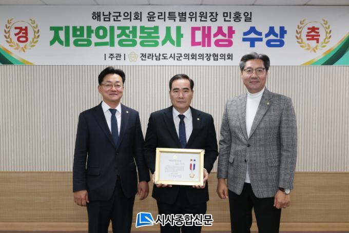 [½Ã»çÁ¾ÇսŹ® = °À±¿À ±âÀÚ] ÇØ³²±ºÀÇȸ(ÀÇÀå ±è¼®¼ø) À±¸®Æ¯º°À§¿øÀå ¹ÎÈ«ÀÏ ÀÇ¿øÀÌ Áö³ 11¿ù 8ÀÏ(¼ö) Àü¶ó³²µµ ½Ã±ºÀÇȸÀÇÀåÇùÀÇȸ·ÎºÎÅÍ Áö¹æÀÇÁ¤ºÀ»ç´ë»óÀ» ¼ö»óÇÏ¿´´Ù.