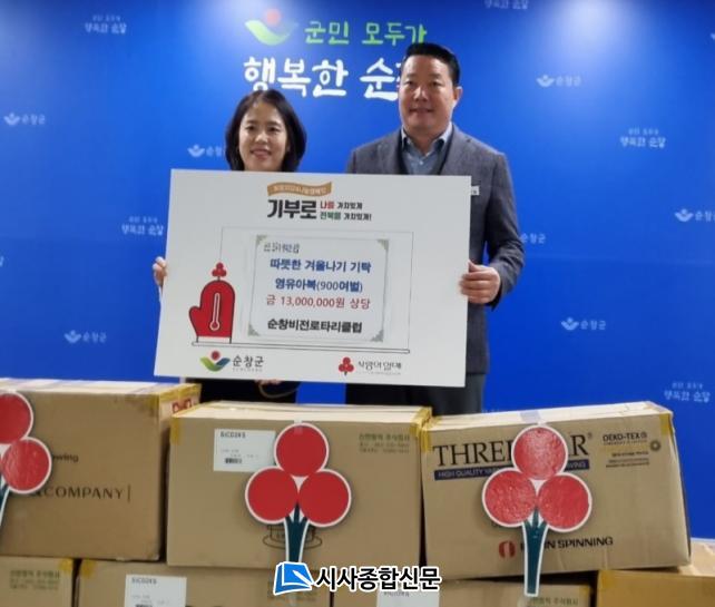 [½Ã»çÁ¾ÇսŹ® = ±è¿¬Èñ ±âÀÚ] ¼øÃ¢ºñÀü·ÎŸ¸®Å¬·´(´ëÇ¥ ÀÌÁöÇö)Àº 16ÀÏ ¼øÃ¢±ºÃ»À» ¹æ¹®ÇØ °ü³» ¿µÀ¯¾Æµé¿¡°Ô Àü´ÞÇØ ´Þ¶ó¸ç 1,300¸¸¿ø »ó´çÀÇ ¿µÀ¯¾Æº¹ 900¿©¹úÀ» ±âŹÇß´Ù.