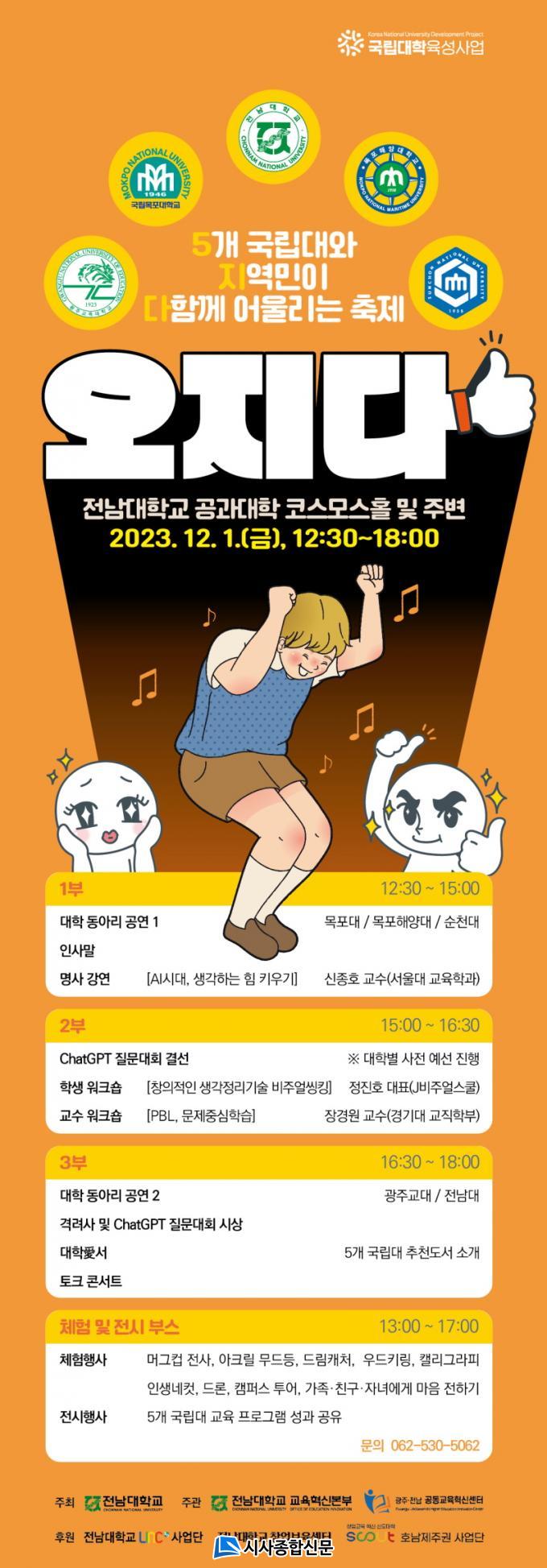 [½Ã»çÁ¾ÇսŹ® = ¿À½ÂÅà ±âÀÚ] Àü³²´ëÇб³¸¦ ºñ·ÔÇØ ±¤ÁÖ±³´ë, ¸ñÆ÷´ë, ¸ñÆ÷ÇØ¾ç´ë, ¼øÃµ´ë°¡ ¿À´Â 12¿ù 1ÀÏ Àü³²´ë °ø°ú´ëÇÐ ÄÚ½º¸ð½ºÈ¦ ÀÏ¿ø¿¡¼ ±¤ÁÖÀü³² 5°³ ±¹¸³´ëÇÐ ¿¬ÇÕ ÃàÁ¦ ¡®¿ÀÁö´Ù¡¯¸¦ ¿¬´Ù.