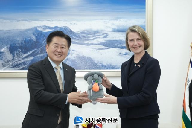 ¿À¿µÈÆ Á¦ÁÖÆ¯º°ÀÚÄ¡µµÁö»ç´Â 16ÀÏ ¿ÀÈÄ Áý¹«½Ç¿¡¼ ¾È³ª Ä«¸® ÇѼ¾ ¿Àºó(Anne Kari Hansen Ovind) ÁÖÇÑ ³ë¸£¿þÀÌ ´ë»ç µî ³ë¸£¿þÀÌ ¹æ¹®´Ü°ú ¸é´ãÇß´Ù. À̹ø ¸é´ãÀº ¾ç Áö¿ª °£ Áö¼Ó°¡´ÉÇÑ ÇØ¾ç, ±âÈĺ¯È ´ëÀÀ, Àç»ý¿¡³ÊÁö, ¼øÈ¯°æÁ¦ »çȸ(2040 ÇÃ¶ó½ºÆ½ Á¦·Î Á¦ÁÖ) µî¿¡ ´ëÇØ ³íÀÇÇϱâ À§ÇØ ¸¶·ÃµÆ´Ù.