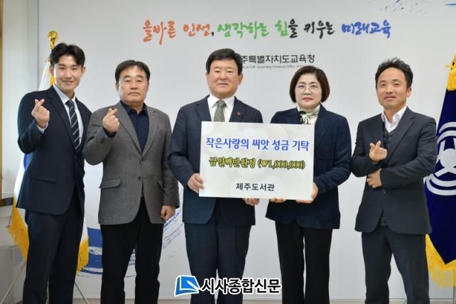 Á¦ÁÖµµ¼°ü °ü°èÀڴ¡°ºÎ»óÀ¸·Î ¹ÞÀº »ó±Ý 100¸¸¿ø Àü¾×À» ÀÛÀº»ç¶ûÀÇ ¾¾¾Ñ¿¡ ±âŹÇÏ¿© ¾î·Á¿òÀ» °Þ´Â Çлýµé¿¡°Ô Á¶±ÝÀ̳ª¸¶ ÈûÀÌ µÇ°í, ÀÌ ÀÛÀº ±âºÎ°¡ ´õ Å« ¼±ÇàÀ¸·Î À̾îÁ®, ´õ ¸¹Àº Çлýµé¿¡°Ô Èñ¸ÁÀ» ÀüÇÏ´Â °è±â°¡ Áö¼ÓÀûÀ¸·Î ÀÌ·ç¾îÁö±æ ±â´ëÇÑ´Ù¡±¶ó°í ¸»Çß´Ù.