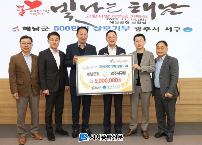 [½Ã»çÁ¾ÇսŹ® = °À±¿À ±âÀÚ] ÇØ³²±º°ú ±¤Áֽà ¼±¸´Â °íÇâ»ç¶û±âºÎÁ¦ Ȱ¼ºÈ¸¦ À§ÇØ ½Ê½ÃÀÏ¹Ý ¸ðÀº °íÇâ»ç¶û±âºÎ±Ý 500¸¸¿øÀ» »óÈ£Áö¿ª¿¡ ±âºÎÇß´Ù.