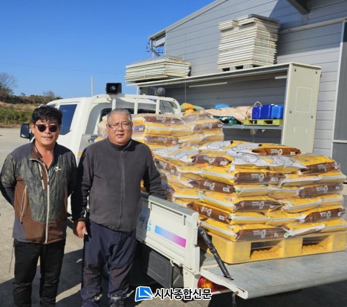 [½Ã»çÁ¾ÇսŹ® = ¿À½ÂÅà ±âÀÚ] °±¤Ãµ ¢ß³ó¾÷ȸ»ç¹ýÀÎ »õ¿µ¾Ï ´ëÇ¥¿Í ½ÃÁ¾¸é ºÀ¼Ò¸®ÀÇ °È£³² ¾¾°¡, 20ÀÏ ¾î·Á¿î ÀÌ¿ô¿¡°Ô ÀüÇØ ´Þ¶ó¸ç ½Ò 10kgµéÀÌ 120Æ÷¸¦ ½ÃÁ¾¸éÇàÁ¤º¹Áö¼¾ÅÍ¿¡ ±âŹÇß´Ù.