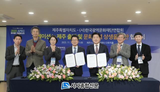 | Á¦ÁÖµµ, ©ÅÇѱ¹±¤¿ª¹®ÈÀç´Ü¿¬ÇÕȸ¿Í ¹®È¿¹¼ú±³·ù Ȱ¼ºÈ ¾÷¹«Çù¾à ü°á |