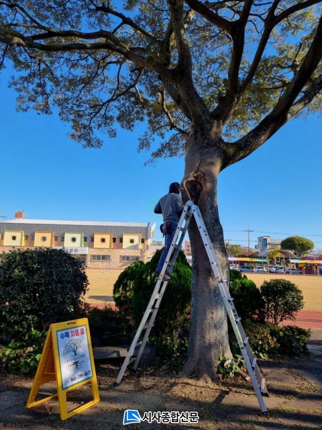 (ÁÖ)¼ö¸ñ³ª¹«º´¿ø(¿øÀå/³ª¹«ÀÇ»ç ¹ÚÄ¡°ü) ¿Ü 3ÀÎÀÌ ¹æ¹®ÇÏ¿© ¿ì¸® Çб³ ¿îµ¿Àå¿¡ ÀÖ´Â ÆØ³ª¹« µÎ ±×·ç¿¡ ´ëÇØ ½â¾î µé¾î°¡´Â ºÎºÐÀ» Á¦°ÅÇÑ ÈÄ, Á¤È®ÇÑ ¼ö¸ñ Áø´Ü°ú ó¹æÀ» ÅëÇÑ ¼ö¸ñ º¸È£Á¶Ä¡(º´ÇØÃæ ¹æÁ¦, ¿Ü°ú¼ö¼ú)¸¦ ½ÃÇàÇÏ¿´´Ù.