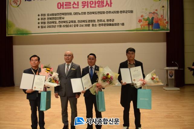 ÇÑÆí, À̳¯ ¡®Á¦11ȸ Àü¶óºÏµµ È¿µµ´ë»ó ½Ã»ó½Ä ¹× ¾î¸£½Å À§¾ÈÇà»ç¡¯¿¡¼´Â °æ·Îȿģ°ú ¾î¸£½Å º¹Áö¿¡ ±â¿©ÇÑ °ø·ÎÀÚ¿¡°Ô µµÁö»ç, ÀüºÏ°æÂûûÀå, ÀüºÏµµÀÇȸÀÇÀå, ÀüÁÖ½ÃÀå, ¿ÏÁÖ±º¼ö, ¿ÏÁÖ±ºÀÇȸ µî¿¡ ǥâÀ» ¼ö¿©ÇßÀ¸¸ç, Æò¼Ò ¾î¸£½Å °ø°æ°ú °æ·Îȿģ»ç»óÀ» ¸ö¼Ò ½ÇõÇÑ µµ³» 14°³½Ã¡¤±º È¿µµ¸ð¹üÀÎ 15¸íÀÌ È¿µµ´ë»óÀ» ¼ö»óÇß´Ù.