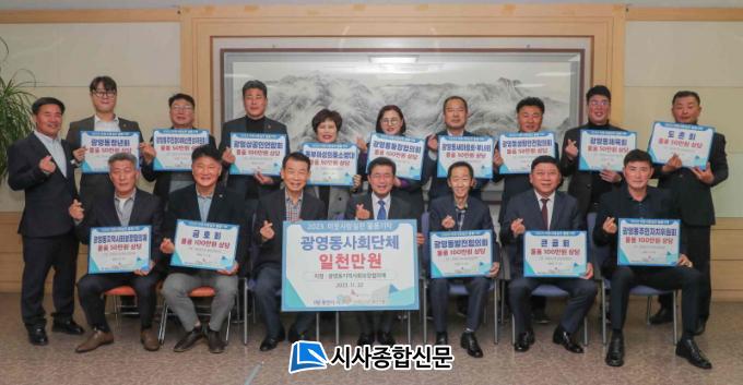 Á¤ÀÎÈ ±¤¾ç½ÃÀåÀº ¡°Áö¿ªÀÇ º¹Áö ¹ßÀüÀ» À§ÇØ ¼ÒÁßÇÑ ÈÄ¿ø ¹°Ç°À» Áö¿øÇØÁֽб¤¿µµ¿ 15°³ »çȸ´Üü¿¡ Áø½ÉÀ¸·Î °¨»çµå¸°´Ù¡±¸ç ¡°ÀÌ¿ô»ç¶û ³ª´®À¸·Î ¸ð¹üÀÌ µÇ´Â ±¤¿µµ¿ »çȸ´ÜüÀÇ ÀÌ·± ¸ð½ÀÀÌ ¿¬¸»¿¬½Ã ÈÆÈÆÇÑ °¨µ¿À¸·Î ¿Â Áö¿ª»çȸ¿¡ È®»êµÇ±æ ¹Ù¶õ´Ù¡±°í ¸»Çß´Ù.
