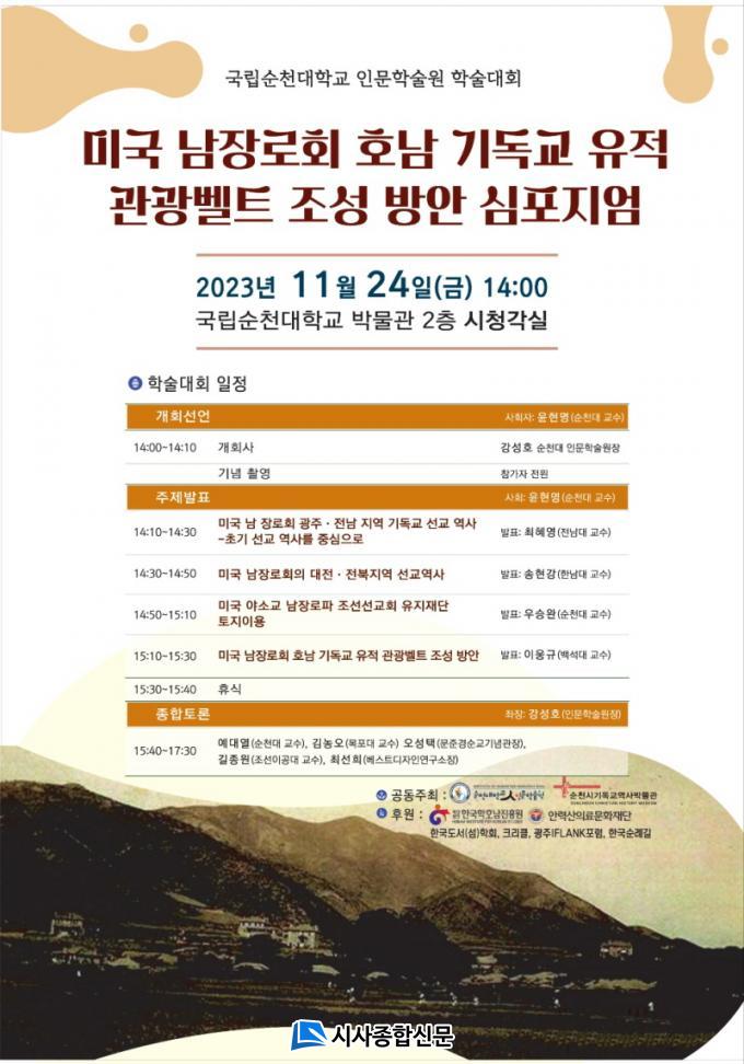 ±¹¸³¼øÃµ´ëÇб³(ÃÑÀå À̺´¿î) Àι®Çмú¿øÀÌ ¼øÃµ¼±±³ºÎ 110ÁÖ³âÀ» ¸ÂÀÌÇÏ¿© ¼øÃµ½Ã ±âµ¶±³¿ª»ç¹Ú¹°°ü°ú °øµ¿À¸·Î ¿À´Â 24ÀÏ ¼øÃµ´ëÇб³ ¹Ú¹°°ü 2Ãþ ½Ãû°¢½Ç¿¡¼ ¡®¹Ì±¹ ³²Àå·Îȸ È£³² ±âµ¶±³ À¯Àû °ü±¤º§Æ® Á¶¼º ¹æ¾È ½ÉÆ÷Áö¾ö¡¯À» °³ÃÖÇÑ´Ù.
