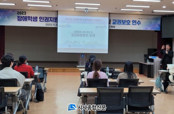 µ¿ºÎ±³À°Áö¿øÃ»¿¡ µû¸£¸é ±¤ÁÖ °ü³» À¯¡¤ÃÊ¡¤ÁßÇб³ ±³»ç Áß Èñ¸ÁÀÚ¸¦ ´ë»óÀ¸·Î ÇÑ À̹ø ¿¬¼ö´Â Àå¾Ö ÇлýÀÇ Æ¯¼ö¼ºÀ¸·Î ÀÎÇØ ±³À°È°µ¿ Ä§ÇØ¿¡ ³ëÃâµÇ±â ½¬¿î ÇöÀå Æ¯¼ö±³»çµéÀÇ °íÃæ°ú ±³±Ç Ä§ÇØ »ç·Ê¸¦ ÆÄ¾ÇÇϰí, °³Á¤µÈ ¡®±³±Çº¸È£ 4¹ý¡¯ µî Á¤Ã¥Àû Áö¿ø ¹æ¾ÈÀ» ¾Ë¾Æº¸´Â ½Ã°£À¸·Î ÁøÇàµÆ´Ù.