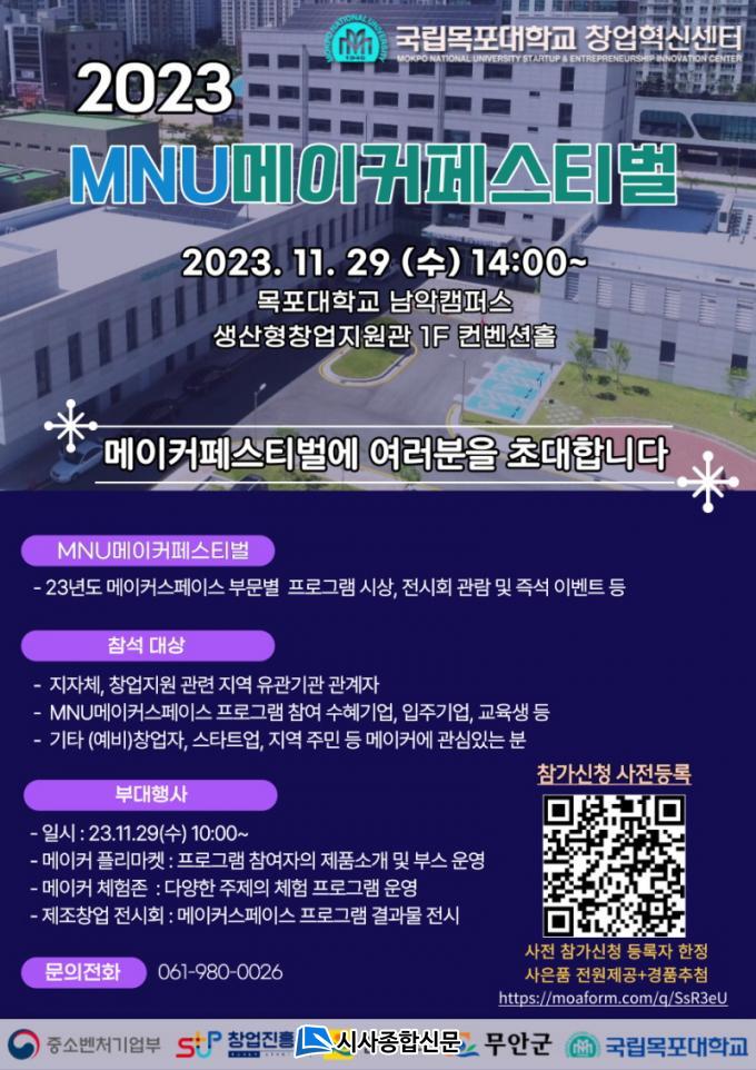 [½Ã»çÁ¾ÇսŹ® = ¿À½ÂÅà ±âÀÚ] ¹«¾È±º(±º¼ö ±è»ê)Àº ±¹¸³¸ñÆ÷´ëÇб³ â¾÷Çõ½Å¼¾ÅÍ(¼¾ÅÍÀå À¯¿µÀç)¿¡¼ ¿î¿µÇÏ´Â MNU¸ÞÀÌÄ¿½ºÆäÀ̽º¿¡¼ ¿À´Â 11¿ù 29ÀÏ ¡®2023 MNU¸ÞÀÌÄ¿Æä½ºÆ¼¹ú¡¯À» °³ÃÖÇÑ´Ù°í ¹àÇû´Ù.