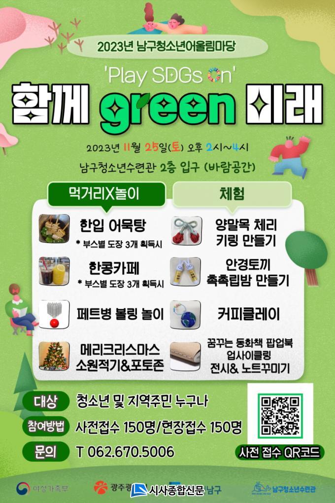 | ±¤ÁÖ³²±¸Ã»¼Ò³â¾î¿ï¸²¸¶´ç ¡®Play SDGs On¡¯ ÇÔ²² green ¹Ì·¡ °³ÃÖ 11¿ù 25ÀÏ ³²±¸Ã»¼Ò³â¼ö·Ã°ü¿¡¼ ÁøÇà |