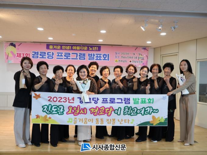 Áøµµ±º³ëÀÎȸ ¹Ú½Å°æ °æ·ÎºÎÀåÀº ¾î¸£½ÅµéÀÌ ¹ßǥȸ¿¡ Âü°¡ÇØ ¼º°ú¸¦ ÀïÃëÇÔÀ¸·Î¼ ¹«·áÇÑ ÀÏ»ó¿¡ È°·ÂÀ» ÁÖ°í ¸ö°ú ¸¶À½ÀÌ °Ç°ÇØÁö´Â °è±â°¡ µÇ¾úÀ¸¸ç, ¿ÀÀϽà °æ·Î´ç ¾î¸£½ÅµéÀÌ ÇÁ·Î±×·¥À» ÅëÇØ ¿¬½ÀÇÑ Áüº¼³Å¸¿Í ¶óÀÎ´í½º·Î ¿©·¯ °÷¿¡ ÂùÁ¶ °ø¿¬À» ÇÏ¿© °°Àº ¾î¸£½Åµé¿¡°Ô ±àÁ¤ÀûÀÎ ¿¡³ÊÁö¸¦ Àü´ÞÇÏ¿´´Ù¸ç °æ·Î´ç ÇÁ·Î±×·¥ÀÇ º¸±ÞÀÇ ¼±¼øÈ¯ÀÌ µÈ ÄÉÀ̽ºÀÎ °Í °°´Ù°í ÇÏ¿´´Ù.