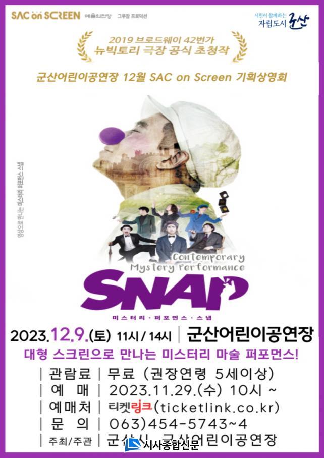 À̹ø 12¿ù ±âȹ»ó¿µÈ¸ SAC on screen ¡®½º³À(SNAP)¡¯Àº ¹Ì±¹ ºê·Îµå¿þÀÌ ´º ºòÅ丮 ±ØÀå ¹× Ä³³ª´Ù ½Ã³ª¸£(CINARS) ºñ¿£³¯·¹¿¡ °ø½Ä ÃÊûµÇ´Â µî ¸¶¼úÀÇ À帣Àû ÇѰ踦 ¶Ù¾î³Ñ´Â ¿¹¼ú¼º°ú ÀÛǰ¼ºÀ» ÀÎÁ¤¹ÞÀ¸¸ç ¼¼°è¸¦ ¸ÅȤÇϰí ÀÖ´Â ³Í¹ö¹ú(¾ð¾î¸¦ ¹èÁ¦ÇÏ°í ¸öÁþ, ¼Ò¸® µîÀ¸·Î Ç¥ÇöÇÏ´Â ¹«¾ð±Ø) ¸¶¼ú °ø¿¬À» ¿µ»óÈ ÇÑ ÀÛǰÀÌ´Ù.