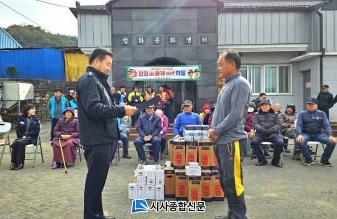 À̳¯ Çà»ç´Â º¸¼º¼Ò¹æ¼ »ýȰ¾ÈÀü¼øÂû´ë ¹× Á÷¿ø, ÀÌ¹Ì¾Ö ¹®´ö¸éÀå, ¹®´ö¸é ÀÇ¿ë¼Ò¹æ´ë, ¿°³²È£ ÀÌÀå, ¹ýȸ¶À» ÁÖ¹ÎÀÌ Âü¼®ÇÑ °¡¿îµ¥ ¿°³²È£ ÀÌÀåÀ» ¸í¿¹¼Ò¹æ°üÀ¸·Î À§ÃËÇÏ°í º¸¼º¼Ò¹æ¼¿¡¼ Áö¿øÇÑ ÁÖÅÃ¿ë ¼Ò¹æ½Ã¼³ ¹× °¡½ºÄÛ Àü´Þ½ÄÀ» °¡Á³´Ù.