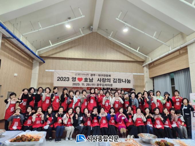 (»ç)´ëÇѾî¸Ó´Ïȸ ±¤ÁÖ±¤¿ª½Ã ¿¬ÇÕȸ(ȸÀå ±èµµÇü)¿Í ´ë±¸±¤¿ª½Ã ¿¬ÇÕȸ(ȸÀå ÇÏÈij²) ȸ¿ø 50¿©¸íÀÌ Âü¼®ÇÏ¿© ºû°íÀ»»ç¶û³ª´®±èÀå´ëÀü Çà»ç¸¦ ÅëÇØ ±èÀå±èÄ¡ 660kg(3¹é5½Ê6¸¸¿ø »ó´ç)¸¦ ÇöÀå¿¡¼ Á÷Á¢ ´ã±×°í, ÀÌÁß 160kg(1¹é¸¸¿ø »ó´ç) ±èÀå±èÄ¡¸¦ »çȸº¹Áö ½Ã¼³ ÀÓÁ÷¿øÀÌ Âü¼®ÇÑ °¡¿îµ¥ ±èÀ峪´® ±âºÎ Àü´Þ½ÄÀ» ÁøÇàÇß´Ù.