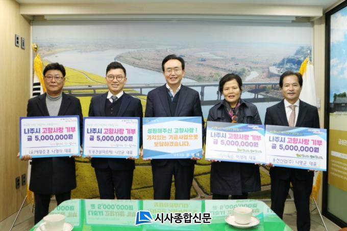 [½Ã»çÁ¾ÇսŹ® = À¯µ¿±¹ ±âÀÚ] ³ªÁÖ½Ã(½ÃÀå À±º´ÅÂ)´Â ¹Ý³²¸é Çâ¿ìÀÎ ¿ëõ»ê¾÷(ÁÖ) ³ª¸í±Õ ´ëÇ¥, Å䱤°Ç¼³(¹Ì¸£Ã¤) ³ª¾È±Õ ´ëÇ¥, (À¯)¿¹ÇâÁ¶°æ ³ª¿µ½Ä ´ëÇ¥, ¢ßÇÏÀÌ¿Á½º ÀÌ¿µ·Ê ´ëÇ¥°¡ °íÇâ»ç¶û±âºÎÁ¦ ÃÖ°í Çѵµ ±Ý¾×ÀÎ 500¸¸ ¿øÀ» °¢°¢ ±âŹÇß´Ù°í 1ÀÏ ¹àÇû´Ù.