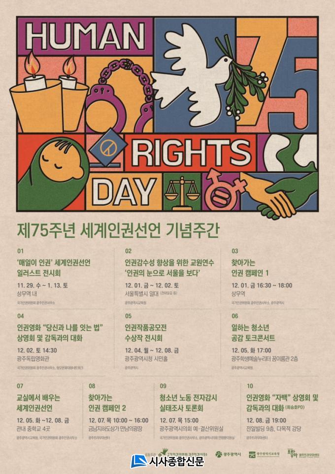 À̹ø ±â³äÁÖ°£Çà»ç´Â 1948³â 12¿ù 10ÀÏ ÀÖ¾ú´ø ¼¼°èÀαǼ±¾ðÀ» ±â³äÇØ ½Ã±³À°Ã»À» ºñ·ÔÇØ ±¤ÁÖ±¤¿ª½Ã, ±¹°¡ÀαÇÀ§¿øÈ¸ ±¤ÁÖÀαǻ繫¼Ò, ±¤ÁÖÆ®¶ó¿ì¸¶¼¾ÅÍ¿Í °øµ¿À¸·Î ÁøÇàµÈ´Ù. ƯÈ÷ ½Ã±³À°Ã»Àº ¡®Ã»¼Ò³â °ø°¨ ÅäÅ© ÄܼƮ¡¯, ¡®±³½Ç¿¡¼ ¹è¿ì´Â ¼¼°èÀαǼ±¾ð¡¯, ¡®ÀαÇÀÇ ´«À¸·Î ¼¿ïÀ» º¸´Ù¡¯ ¼¼°¡Áö Çà»ç¸¦ ¸Ã¾Æ ÁøÇàÇÒ ¿¹Á¤ÀÌ´Ù.