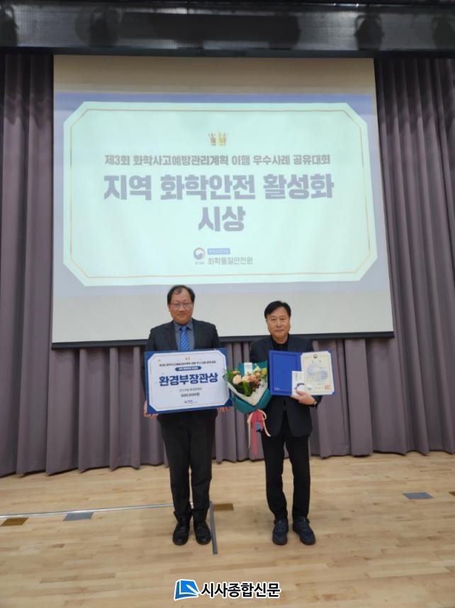 À̳¯ ±º»ê½Ã´Â ÃÖ¿ì¼ö±â°üÀ¸·Î ¼±Á¤µÅ ȯ°æºÎÀå°ü»óÀ» ¼ö»óÇÔ¿¡ µû¶ó Áö³ÇØ¿¡ À̾î 2³â ¿¬¼ÓÀ¸·Î ÃÖ¿ì¼ö±â°ü¿¡ ¼±Á¤µÇ¸ç ÈÇлç°í ´ëÀÀ ¿ª·®À» ÀÎÁ¤ ¹Þ¾Ò´Ù. ¾Õ¼ ÈÇоÈÀüÁÖ°£ Çà»ç µÑ° ³¯ÀÎ 11¿ù 28ÀÏ ÁøÇàÇÑ Á¦3ȸ ÈÇлç°í¿¹¹æ°ü¸® ÀÌÇà ¿ì¼ö»ç·Ê °øÀ¯´ëȸ¿¡¼µµ ½Ã°¡ ¿ì¼ö±â°üÀ¸·Î ¼±Á¤µÇ¾î ȯ°æºÎÀå°ü»óÀ» ¼ö»óÇß´Ù.