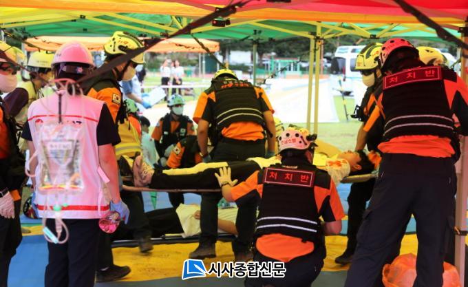 Àç³ÇöÀå ±¸±Þ´ëÀÀÈÆ·Ã Æò°¡´Â ´Ù¼ö »ç»óÀÚ ¹ß»ý ´ëÇü Àç³ÇöÀå¿¡¼ ±¸±Þ´ëÀÇ ´ëÀÀ´É·ÂÀ» È®ÀÎÇÏ´Â Æò°¡·Î Àü±¹ ´ÜÀ§·Î ¸Å³â ½Ç½ÃµÇ°í ÀÖ´Ù. ±¸±Þ´ëÀÇ È¯ÀÚ ÁßÁõµµ ºÐ·ù ¹× ÀÀ±Þóġ, ÇöÀå ÀÀ±ÞÀÇ·á¼Ò ÀÓ¹« ¼öÇà µî ´Ù¼ö »ç»óÀÚ ´ëó ´É·Â°ú À¯°ü±â°ü°úÀÇ ÇùÁ¶Ã¼°è ±¸Ãà µî ÅëÇÕ ´ëÀÀ ´É·ÂÀ» È®ÀÎÇÑ´Ù.