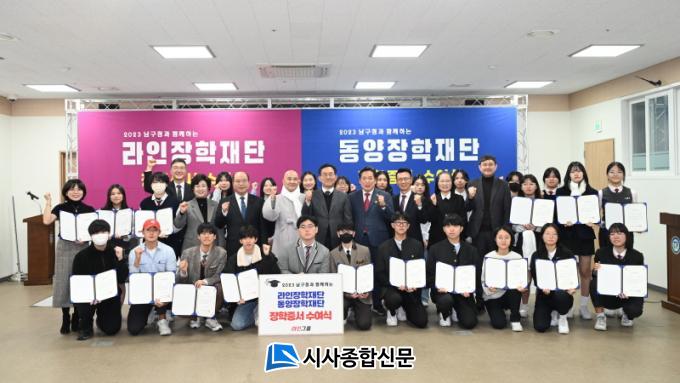 ÀåÇÐ±Ý Àü´Þ½Ä¿¡´Â ±èº´³» ±¸Ã»Àå°ú °øº´Å¹ ¢ß¶óÀÎ±×·ì ´ëÇ¥ ¹× °ü°èÀÚ, ÀåÇбÝÀ» ¹Þ´Â °ü³» °íµîÇб³ ÀçÇлý µî 40¸í °¡·®ÀÌ Âü¼®Çß´Ù.