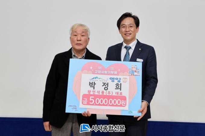 [½Ã»çÁ¾ÇսŹ® = ¿À½ÂÅà ±âÀÚ] ¿µ¾Ï±º ±º¼¸éÀÇ ±èÄ¡»ý»ê¾÷ü ¿ÕÀνÄǰ(ÁÖ) ¹ÚÁ¤Èñ ´ëÇ¥°¡ 1ÀÏ ¿µ¾Ï±ºÃ»À» ã¾Æ °íÇâ»ç¶û±âºÎ±Ý 500¸¸ ¿øÀ» ±âŹÇß´Ù.