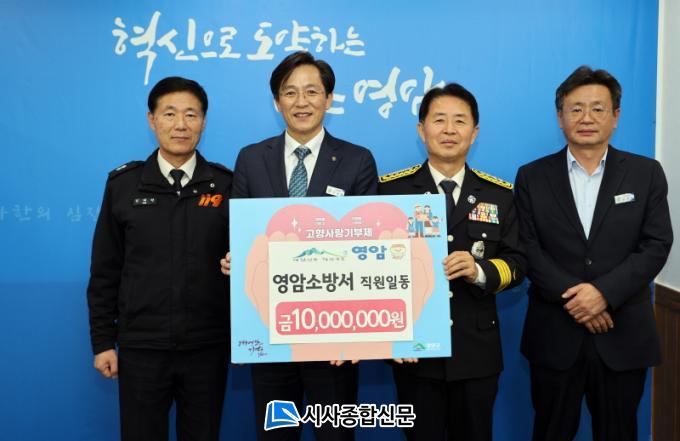 [½Ã»çÁ¾ÇսŹ® = ¿À½ÂÅà ±âÀÚ] ¿µ¾Ï¼Ò¹æ¼(¼Àå ±èÀç½Â) Á÷¿øµéÀÌ 1ÀÏ ½Ê½ÃÀϹÝÀ¸·Î ¸ðÀº °íÇâ»ç¶û±âºÎ±Ý 1,000¸¸ ¿øÀ» ¿µ¾Ï±º¿¡ Àü´ÞÇß´Ù.