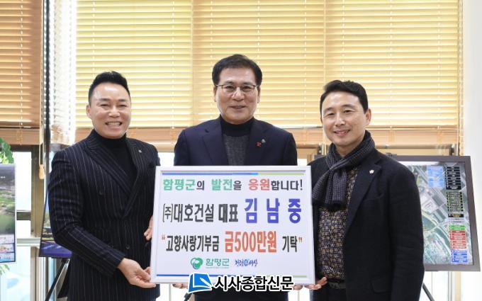 5ÀÏ ±ºÀº ¡°¢ß´ëÈ£°Ç¼³ ±è³²Áß ´ëÇ¥°¡ ÇÔÆòÀÇ ¹ßÀüÀ» À§ÇØ °íÇâ»ç¶û±âºÎ±Ý ÃÖ°í Çѵµ¾×ÀÎ 500¸¸¿øÀ» À̳¯ ±âŹÇß´Ù¡±°í ¹àÇû´Ù.