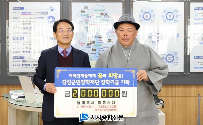 ¹ýÈコ´ÔÀº Áö³ 10¿ù 23ÀÏ, Á¦32ȸ ³²¹Ì¸¤»ç »ê»çÀ½¾Çȸ¸¦ ¸ÂÀÌÇØ ÀåÇÐ±Ý 1õ¸¸ ¿øÀ» ±âŹÇÑ µ¥ À̾î, À̹ø¿¡µµ °Áø±º¹ÎÀåÇÐÀç´Ü¿¡ ÀåÇÐ±Ý 2¹é¸¸ ¿øÀ» ±âŹÇÏ´Â µî Áö¿ª ±³À° ¹ßÀüÀ» À§ÇÑ ³ª´®À» ²ÙÁØÈ÷ À̾î¿À°í ÀÖÀ¸¸ç, ±× °á°ú ÇöÀç±îÁö °Áø±º¹ÎÀåÇÐÀç´Ü¿¡ ÃÑ 1¾ï 1õ 7¹é¸¸ ¿øÀ̶ó´Â °í¾×À» ±âŹÇÏ´Â µî °Áø±ºÀÇ Áö¿ª ±³À° ¹ßÀü¿¡ Áö´ëÇÑ °øÇåÀ» ÇØ¿À°í ÀÖ´Ù.