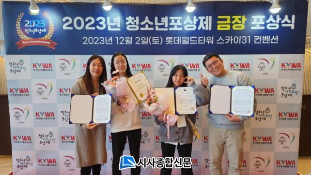 Çѱ¹Ã»¼Ò³âȰµ¿ÁøÈï¿ø¿¡¼ ÁÖÃÖÇÑ ¡¸2023³â û¼Ò³âÆ÷»óÁ¦ Æ÷»ó½Ä ¹× ¿ì¼ö»ç·Ê°ø¸ðÀü ½Ã»ó½Ä¡¹Àº ±¹Á¦Ã»¼Ò³â¼ºÃëÆ÷»óÁ¦ ¹× û¼Ò³âÀڱ⵵ÀüÆ÷»óÁ¦¿¡ Âü¿©Çϴ û¼Ò³âµéÀÇ ÀÚ±à½ÉÀ» °íÃëÇÏ°í Æ÷»óÁ¦¸¦ Ȱ¼ºÈÇϱâ À§ÇØ ¸¶·ÃµÇ¾úÀ¸¸ç, ±ÝÀå Æ÷»ó û¼Ò³â ¹× °ø¸ðÀü ¼ö»óÀÚ, Æ÷»óÁöµµÀÚ, Çкθð, û¼Ò³â°è ÀÎ»ç µî 170¿©¸íÀÌ Âü¼®Çß´Ù.