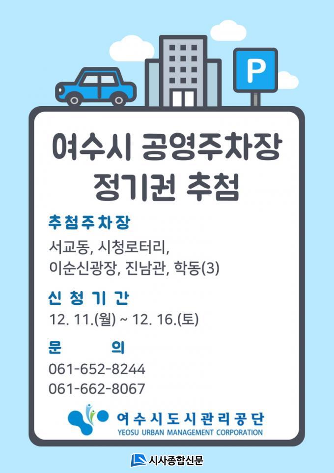 À̹ø Á¤±â±Ç Ãß÷Àº °ü³» °ø¿µÁÖÂ÷Àå 21°³¼Ò Áß Á¤±â±Ç ÀÌ¿ëÀÚ°¡ ¸¹Àº °ø¿µÁÖÂ÷Àå 5°÷À¸·Î ¡ã ¼±³µ¿ ÁÖÂ÷Àå(¼±³µ¿ 153) ¡ã ½Ãû·ÎÅ͸® ÁÖÂ÷Àå(Çе¿ 158) ¡ãÀ̼ø½Å±¤Àå ÁÖÂ÷Àå(Áß¾Óµ¿ 383) ¡ã Áø³²°ü ÁÖÂ÷Àå(Áß¾Óµ¿ 505) ¡ã Çе¿¼±¼Ò»ó°¡(3) ÁÖÂ÷Àå(Çе¿ 96-4)À» ´ë»óÀ¸·Î ÀÌ·ç¾îÁø´Ù. Á¾Àü±îÁö Ãß÷À¸·Î ÁøÇàµÇ´ø ÈﱹüÀ°°ü ÁÖÂ÷Àå(Çе¿ 79)Àº Ãß÷¹æ½ÄÀÌ ¾Æ´Ñ ÀÏ¹Ý ½Åû¹æ½ÄÀ¸·Î º¯°æµÇ¾î ½Åû±â°£³» ¼±Âø¼øÀ¸·Î ½ÅûÇÏ¸é µÈ´Ù.