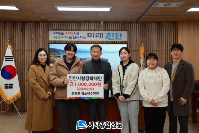 À̳¯ Àü´Þ½Ä¿¡¼´Â Áø¾È±º û¼Ò³â¼ö·Ã°ü¿¡¼ ¿î¿µÇϴ û¼Ò³âÀÚ¿øºÀ»çµ¿¾Æ¸® ȸ¿øÀÎ ±è¹Î±Ô(Áø¾È Á¦Àϰí2), ¹ÚÈñ¿¬(Áø¾È Á¦Àϰí1), ¹Ú¿¬¼±(Áø¾È Á¦Àϰí1) ÇлýÀÌ Âü¼®ÇÏ¿© Á÷Á¢ ÀåÇбÝÀ» Àü´ÞÇß´Ù.
