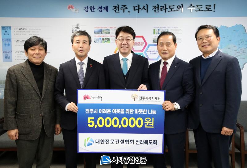 [½Ã»çÁ¾ÇսŹ® = ±è¿¬Èñ ±âÀÚ] ´ëÇÑÀü¹®°Ç¼³Çùȸ Àü¶óºÏµµÈ¸(ȸÀå ÀÓ±ÙÈ«)´Â 7ÀÏ ¿¬¸»¿¬½Ã¸¦ ¸Â¾Æ ¾î·Á¿òÀ» °Þ°í ÀÖ´Â º¹Áö »ç°¢Áö´ë ÀÌ¿ôÀ» À§ÇØ »ç¿ëÇØ´Þ¶ó¸ç ÀüÁֽú¹ÁöÀç´Ü ÀüÁÖ»ç¶÷(ÀÌ»çÀå À±¹æ¼·)¿¡ ¼º±Ý 500¸¸ ¿øÀ» ±âºÎÇß´Ù.