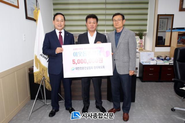 ´ëÇÑÀü¹®°Ç¼³Çùȸ ÀüºÏµµÈ¸(ÀÓ±ÙÈ« ȸÀå)´Â Áö³ 6ÀÏ Á¤À¾½Ã¸¦ ¹æ¹®ÇØ ¼º±Ý 500¸¸¿øÀ» ±âŹÇß´Ù.
