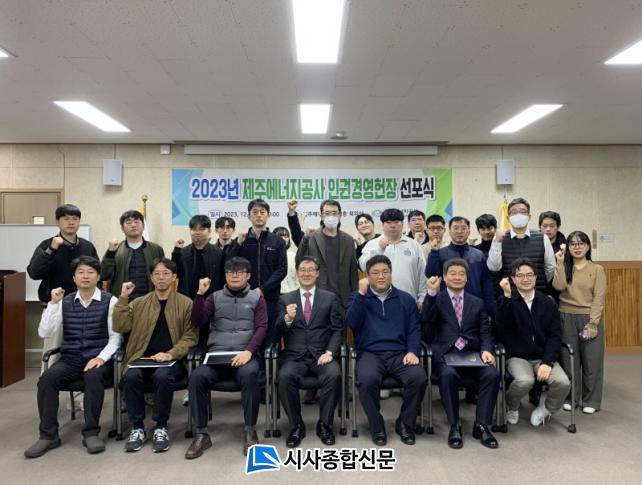 [½Ã»çÁ¾ÇսŹ® = °í¼º¹Î ±âÀÚ] Á¦ÁÖ¿¡³ÊÁö°ø»ç´Â ¼¼°è ÀαÇÀÇ ³¯(12¿ù 10ÀÏ)À» ¸ÂÀÌÇÏ¿© ÀÓÁ÷¿øÀÌ Âü¼®ÇÑ °¡¿îµ¥ 12¿ù 6ÀÏ ¡®Á¦ÁÖ¿¡³ÊÁö°ø»ç Àαǰ濵ÇåÀå ¼±Æ÷½Ä¡¯À» °³ÃÖÇÏ¿´´Ù.