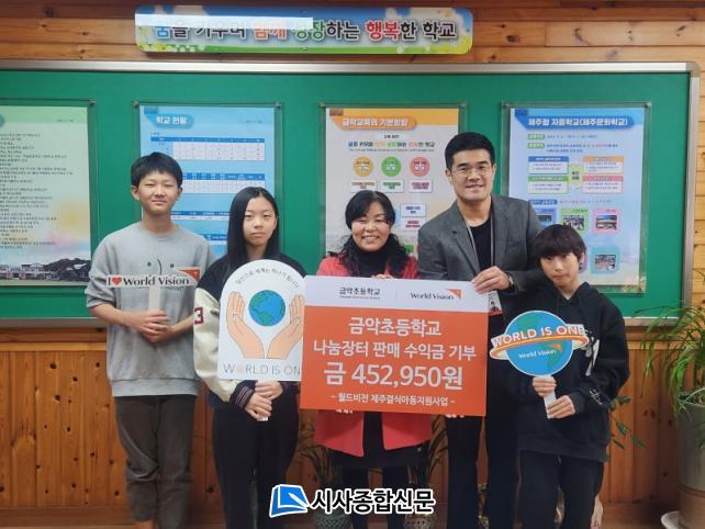 [½Ã»çÁ¾ÇսŹ® = °í¼º¹Î ±âÀÚ] ±Ý¾ÇÃʵîÇб³(±³Àå °Á¤ÀÌ)´Â Áö³ 6ÀÏ ³ª´®ÀåÅÍ ¼öÀÍ±Ý 452,950¿øÀ» ¿ùµåºñÀü Á¦ÁÖ³ª´®¼¾ÅÍ¿¡ ±âºÎÇÏ¿´´Ù.