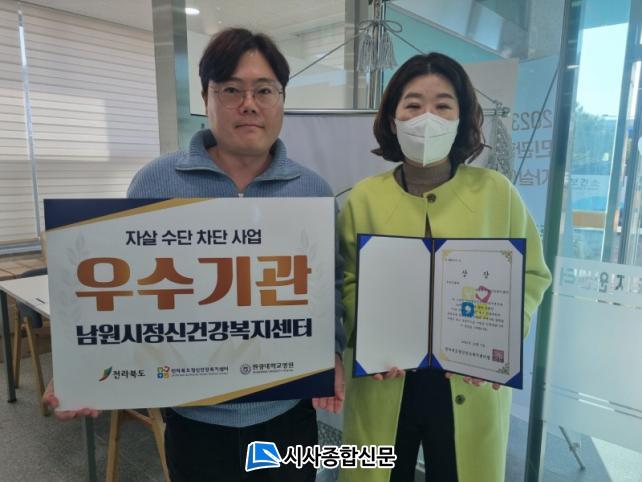 [½Ã»çÁ¾ÇսŹ® = ±è¿¬Èñ ±âÀÚ] ³²¿ø½Ãº¸°Ç¼Ò(¼ÒÀå ÇÑ¿ëÀç)´ÂÀü¶óºÏµµ Á¤½Å°Ç°­º¹Áö¼¾ÅÍÀÇ Æò°¡½É»ç¸¦ ÅëÇØ 2023³â ÀÚ»ì¼ö´Ü Â÷´Ü»ç¾÷ ¿ì¼ö±â°ü°ú ¿ì¼ö¾÷ü·Î ¡®³²¿ø½ÃÁ¤½Å°Ç°­º¹Áö¼¾ÅÍ¿Í ³ë¾ÏÁÖ°ø¸¶Æ®¡¯°¡ ¼±Á¤‧¼ö»ó µÇ¾ú´Ù°í ¹àÇû´Ù.