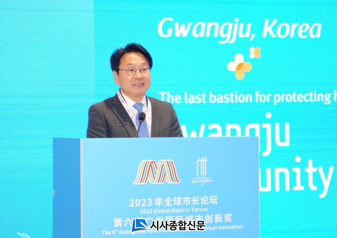 °±âÁ¤ ½ÃÀåÀº 9ÀÏ Áß±¹ ±¤Àú¿ì ¿ù¼ö±¹Á¦ÄÁº¥¼Ç¼¾ÅÍ¿¡¼ ¿¸° ¡®Á¦3ȸ ¼¼°è½ÃÀåÆ÷·³¡¯¿¡ Âü¼®ÇØ ¡®±¤ÁÖ´Ù¿ò ÅëÇÕµ¹º½¡¯ Á¤Ã¥À» ÁÖÁ¦·Î ±âÁ¶¿¬¼³¿¡ ³ª¼ ±¤ÁÖ¸¸ÀÇ µ¹º½Á¤Ã¥ µµÀÔ ¹è°æ°ú 5¡¤18¹ÎÁÖȿ¿¡ »Ñ¸®¸¦ µÐ ¹ÎÁÖµµ½Ã ±¤ÁÖÀÇ Æ÷¿ë¼ºÀ» ¾Ë·È´Ù.