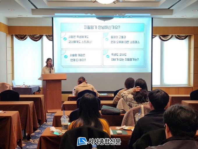 À̹ø ¿¬¼ö´Â ±³»çµéÀÇ Æò°¡ ¹®Ç× °³¹ß Àü¹®¼ºÀ» ³ô¿© ½ÃÇè ¹®Á¦ÀÇ ÃâÁ¦ ¿À·ù¸¦ ¿¹¹æÇϰí, ´ÜÀ§ Çб³ÀÇ Æò°¡ ½Å·Úµµ¸¦ ³ôÀ̱â À§ÇØ ¸¶·ÃÇßÀ¸¸ç, µµ³» ÁßÇб³ Èñ¸Á ±³»ç 60¸íÀÌ Âü¿©Çß´Ù.