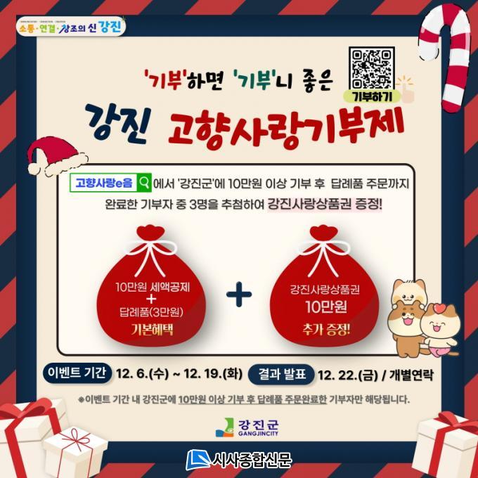 À̺¥Æ® ´ë»óÀº Àü ±¹¹ÎÀ¸·Î, 12¿ù 6ÀϺÎÅÍ 19ÀϱîÁö °Áø±º¿¡ 10¸¸¿ø ÀÌ»ó ±âºÎÇÏ°í °íÇâ»ç¶ûeÀ½¿¡¼ ´ä·ÊǰÀ» ÁÖ¹®Çϸé ÀÚµ¿À¸·Î ÀÀ¸ðµÈ´Ù. ±ºÀº ÀÌ °¡¿îµ¥ 3¸íÀ» ÃßÃ·ÇØ °Áø»ç¶û»óǰ±Ç 10¸¸¿øÀ» Ãß°¡·Î ÁõÁ¤Çϰí, ´ç÷ÀÚ¿¡°Ô´Â 12¿ù 22ÀÏ °³º° Å뺸ÇÒ ¿¹Á¤ÀÌ´Ù.