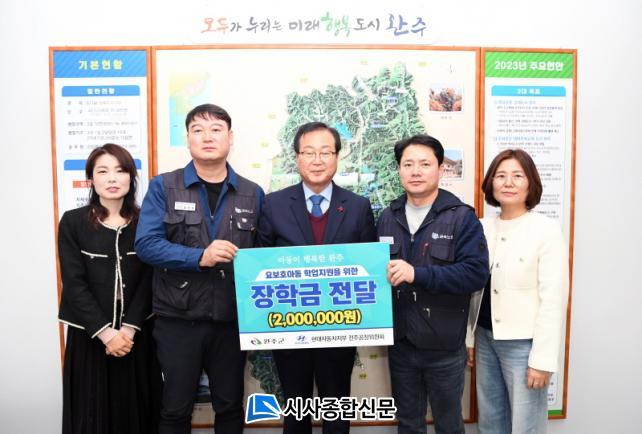 Áö³ 8ÀÏ ±Ý¼Ó³ëÁ¶ Çö´ëÀÚµ¿Â÷ÁöºÎ ÀüÁÖ°øÀåÀ§¿øÈ¸´Â ¿ÏÁÖ±ºÀ» ã¾Æ ¾î·Á¿î °¡Á¤È¯°æ ¼Ó¿¡¼µµ ²ÞÀ» ÀÌ·ï°¡´Â ¾Æµ¿µé¿¡°Ô µµ¿òÀÌ µÇ°í ½Í´Ù´Â ¶æ°ú ÇÔ²² ÀåÇбÝÀ» Àü´ÞÇß´Ù.