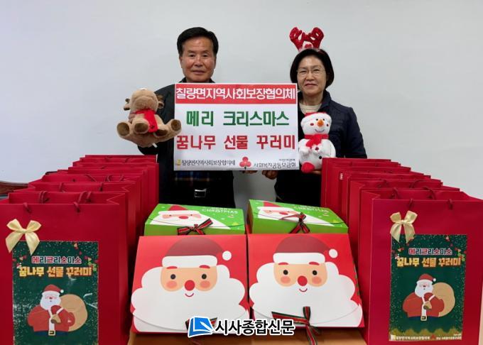 [½Ã»çÁ¾ÇսŹ® = ¿À½ÂÅà ±âÀÚ] °Áø±º Ä¥·®¸é Áö¿ª»çȸº¸ÀåÇùÀÇü(°øµ¿À§¿øÀå ¾ç¿¬¼÷, À̼®ºÀ)°¡ Áö³ 11ÀÏ Å©¸®½º¸¶½º¸¦ ¾ÕµÎ°í Àú¼Òµæ ¾Æµ¿¡¤Ã»¼Ò³â 18¸í¿¡°Ô ¡®¸Þ¸® Å©¸®½º¸¶½º ²Þ³ª¹« ¼±¹° ²Ù·¯¹Ì¡¯¶ó´Â ÁÖÁ¦·Î ¼±¹°À» Àü´ÞÇß´Ù.
