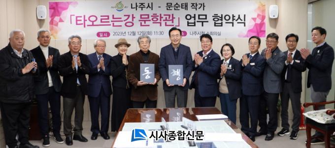 ³ªÁÖ½Ã(½ÃÀå À±º´ÅÂ)´Â Áö³ 12ÀÏ ½Ãû»ç ¼ÒȸÀǽǿ¡¼ ¼Ò¼³ ÀúÀÚÀÎ ¹®¼øÅ ÀÛ°¡¿Í ¡®Å¸¿À¸£´Â ° ¹®Çаü¡¯ Á¶¼º ¹× ¿î¿µÀ» À§ÇÑ ¾÷¹«Çù¾àÀ» ü°áÇß´Ù°í 13ÀÏ ¹àÇû´Ù.