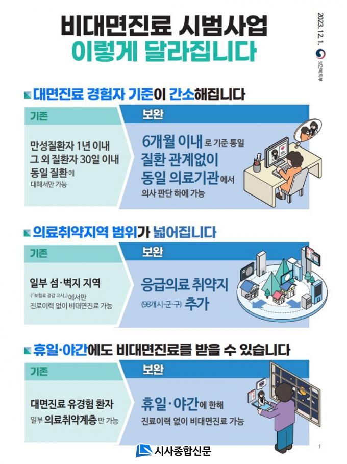 º¸°Çº¹ÁöºÎ´Â ÀÇ·á ±â¹Ý ½Ã¼³(ÀÎÇÁ¶ó) ºÎÁ· Áö¿ªÀÌ ¸¹°í, ÀÇ·áÃë¾à ½Ã°£´ë º´ÀÇ¿ø ÀÌ¿ëÀÌ ¾î·Æ´Ù´Â ÇöÀå ÀÇ°ß µîÀ» ¹Ý¿µÇØ ºñ´ë¸éÁø·á ½Ã¹ü»ç¾÷À» È®´ëÇß´Ù. ´ë¸é Áø·á °æÇèÀÚ ±âÁØ °£¼ÒÈ, ÀÇ·áÃë¾àÁö¿ª ¹üÀ§ È®´ë, ÈÞÀÏ¡¤¾ß°£¿¡ ÇÑÇØ Áø·á ÀÌ·Â ¾øÀ̵µ ºñ´ë¸é Áø·á¸¦ ¹ÞÀ» ¼ö ÀÖµµ·Ï È®´ëÇÑ °ÍÀÌ ÁÖ¿ä °ñÀÚ´Ù.