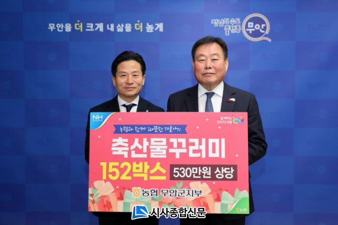 [½Ã»çÁ¾ÇսŹ® = ¿À½ÂÅà ±âÀÚ] ¹«¾È±º(±º¼ö ±è»ê)Àº Áö³ 19ÀÏ NH³óÇù ¹«¾È±ºÁöºÎ(ÁöºÎÀå ±èÇØÁ¾)·ÎºÎÅÍ 530¸¸ ¿ø »ó´çÀÇ Ãà»ê¹°²Ù·¯¹Ì 152¼¼Æ®¸¦ ±âŹ¹Þ¾Ò´Ù°í ¹àÇû´Ù.