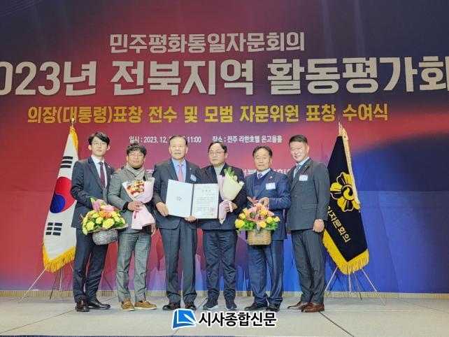 ¹ÎÁÖÆòÅë °íⱺÇùÀÇȸ´Â 20ÀÏ, ÆòÈÅëÀÏ °ø°¨´ë È®»ê µîÀÇ Àû±ØÀûÀΠȰµ¿À¸·Î ÆòÈ¿Í ¹ø¿µÀÇ Çѹݵµ¸¦ ¸¸µé¾î °¡´Âµ¥ ±â¿©ÇÑ °øÀûÀ» ÀÎÁ¤¹Þ¾Æ ´Üü ºÎ¹®¿¡¼ ÃÖ°í»óÀÎ ¡®¹ÎÁÖÆòÅë ÀÇÀå(´ëÅë·É) ǥâ ¼ö»ó¡¯ÀÇ ¿µ±¤À» ¾È¾Ò´Ù.
