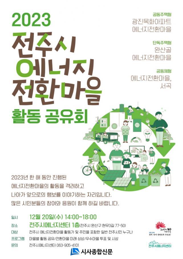 ÀüÁֽÿ¡³ÊÁö¼¾ÅÍ´Â ³»³âµµ ÀüÁֽà ¿¡³ÊÁöÀüȯ¸¶À» Áö¿ø»ç¾÷À¸·Î ¿ÃÇØ ¼±Á¤µÈ 3°³ ¸¶À»¿¡ ´ëÇØ ¿¡³ÊÁö È¿À²È ¹× »ý»êÀ» À§ÇÑ ½Ã¼³ Áö¿ø¿¡ ³ª¼°í, 2°³ ¸¶À»À» ½Å±Ô ÁöÁ¤ÇØ ¿¡³ÊÁö Àüȯ ÀνÄÀ» Á¡Â÷ È®»ê½ÃÄѳª°¥ °èȹÀÌ´Ù.