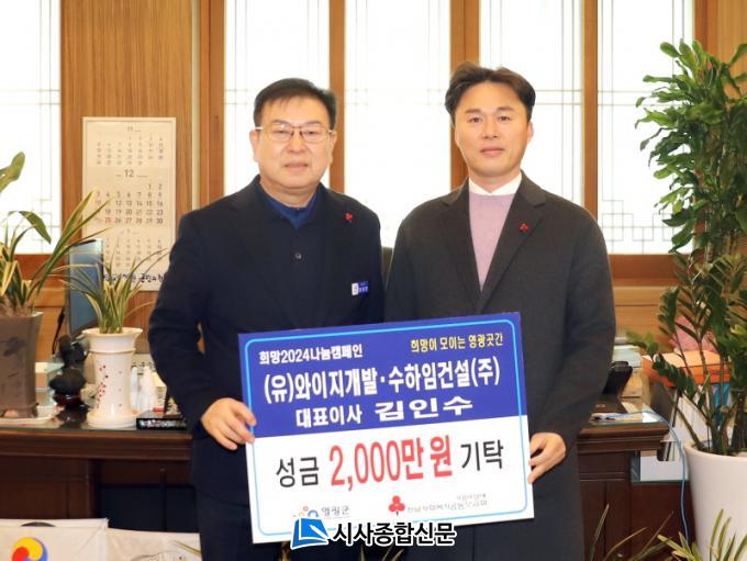 [½Ã»çÁ¾ÇսŹ® = ¿À½ÂÅà ±âÀÚ] Áö³ 20ÀÏ, (À¯)¿ÍÀÌÁö°³¹ß¡¤¼öÇÏÀӰǼ³(ÁÖ) ±èÀμö ´ëÇ¥À̻簡 »çȸº¹Áö°øµ¿¸ð±Ýȸ¿¡ ±âŹÇÑ 2,000¸¸ ¿øÀ» ¾î·Á¿î ÀÌ¿ô¿¡°Ô »ç¿ëÇØ ´Þ¶ó¸ç ¿µ±¤°÷°£¿¡ ÁöÁ¤ ±âŹÇÏ¿´´Ù.